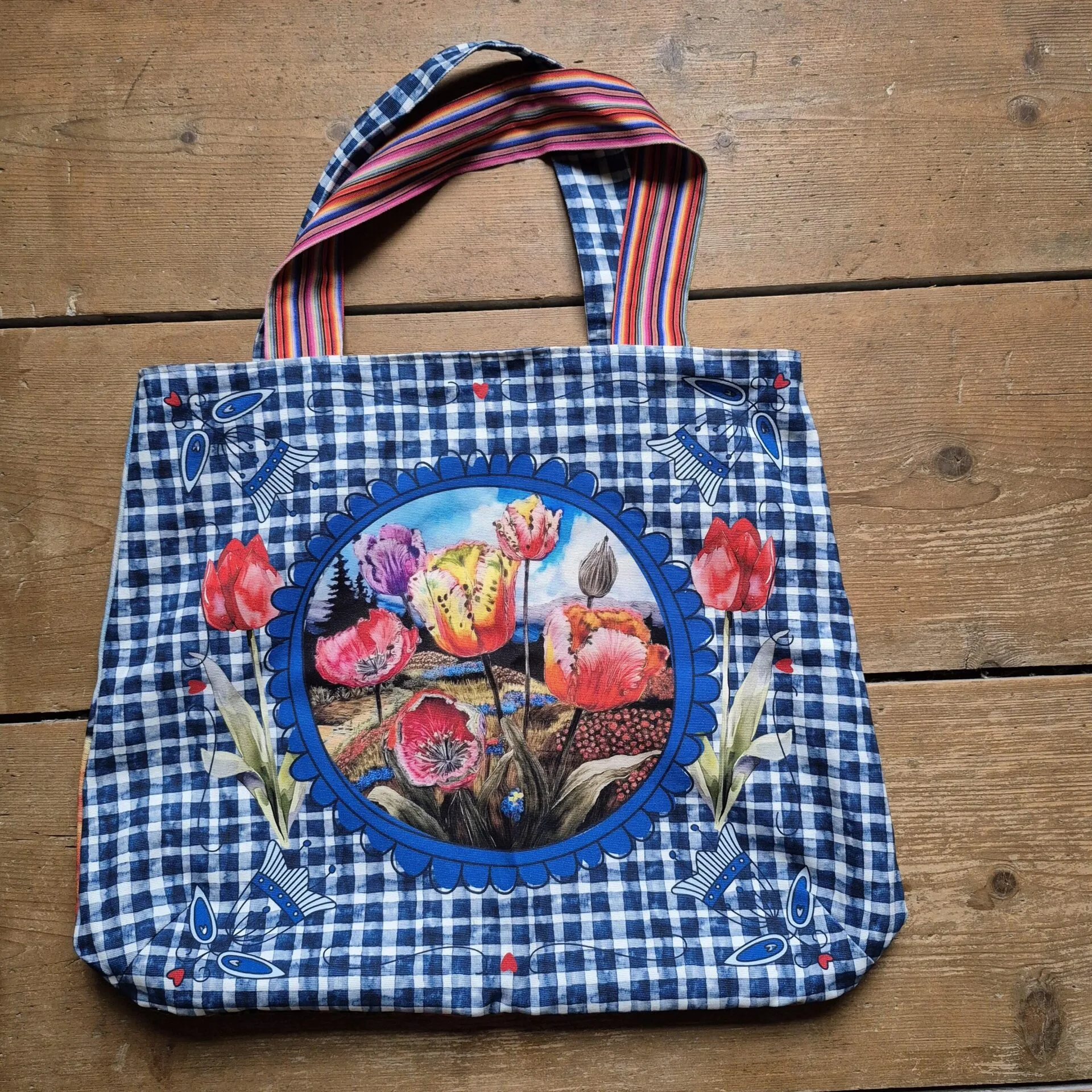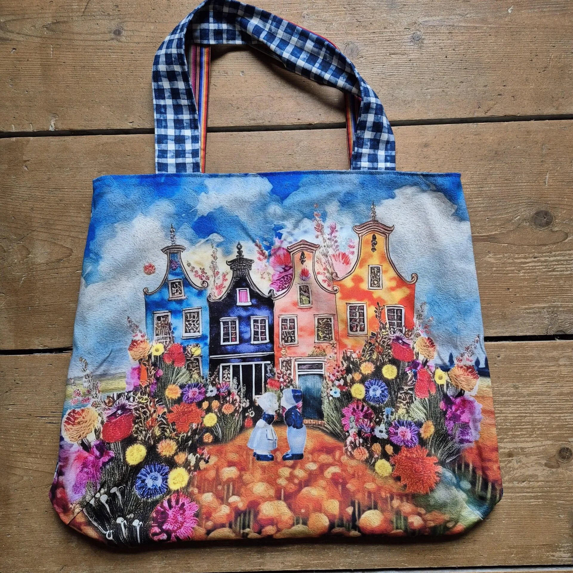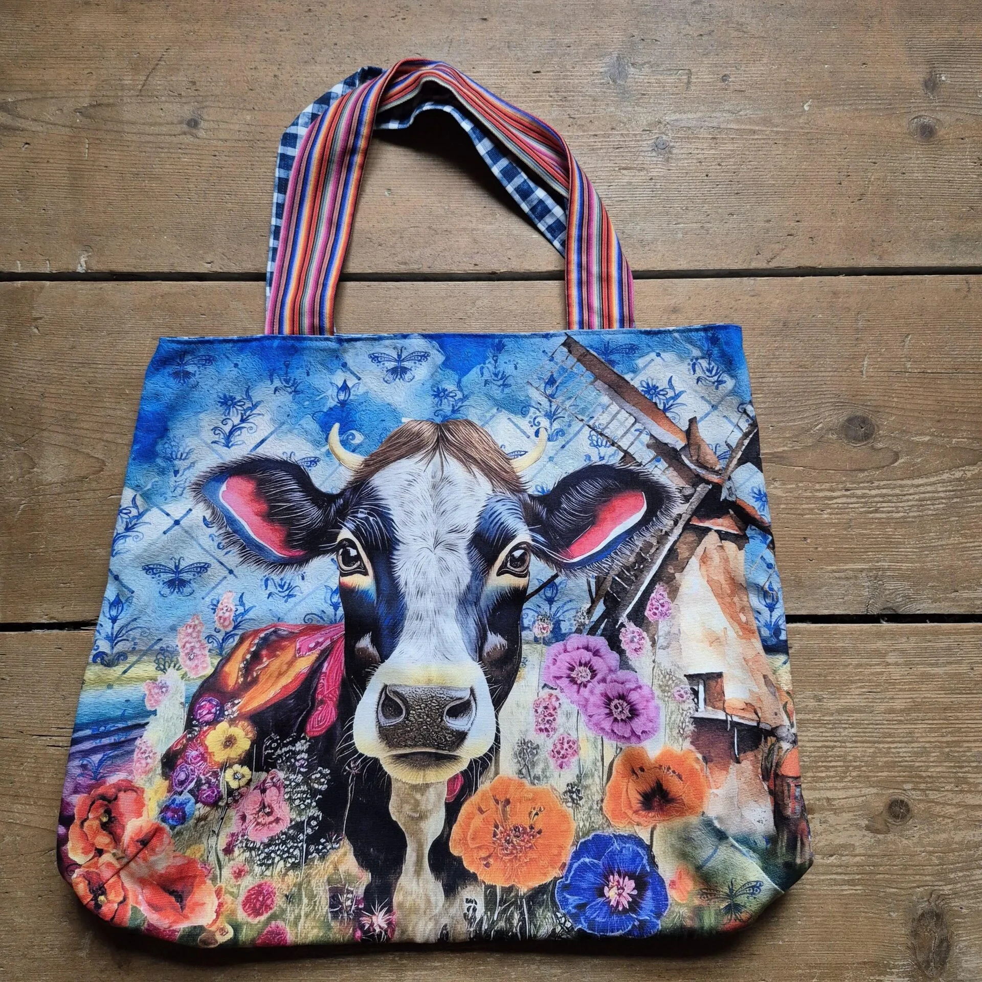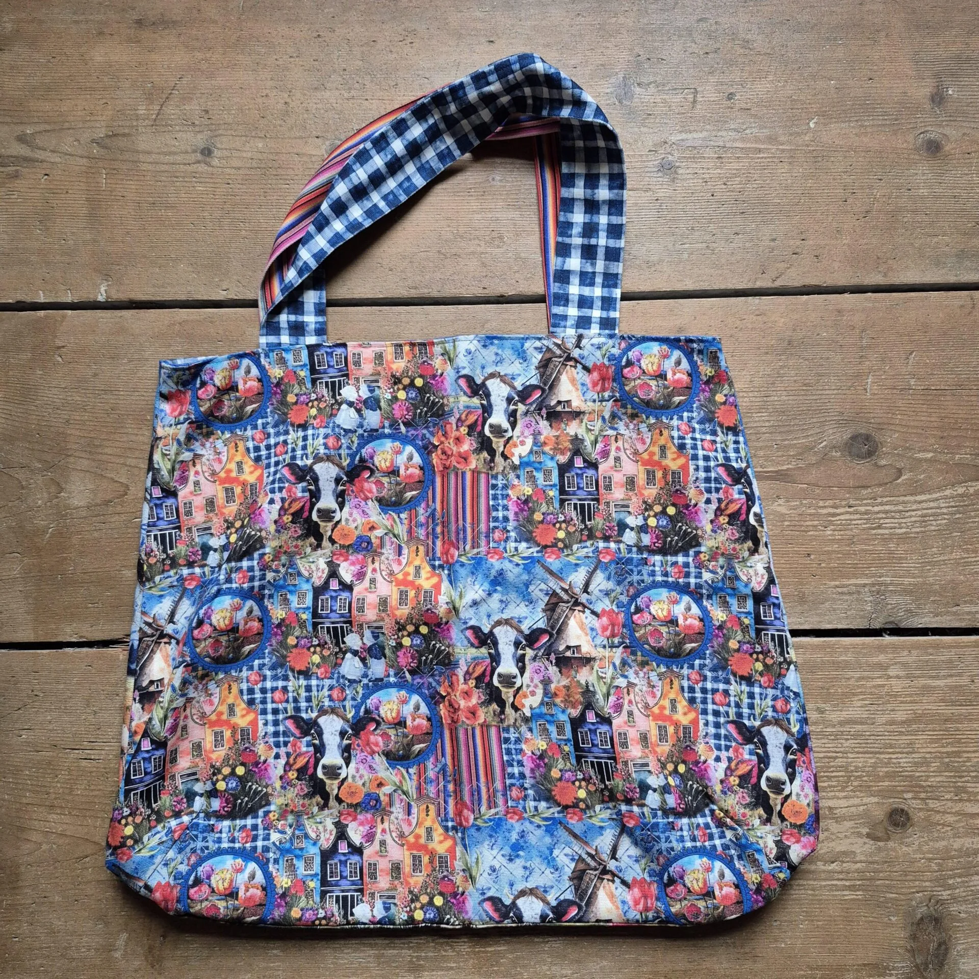 Van dit paneel kun je een hele leuke handige tas maken voor dagelijks gebruik. De tas is makkelijk op te vouwen en is lekker ruim en gemaakt van sterke canvasstof en als je de tas omkeert zie je een ander design.