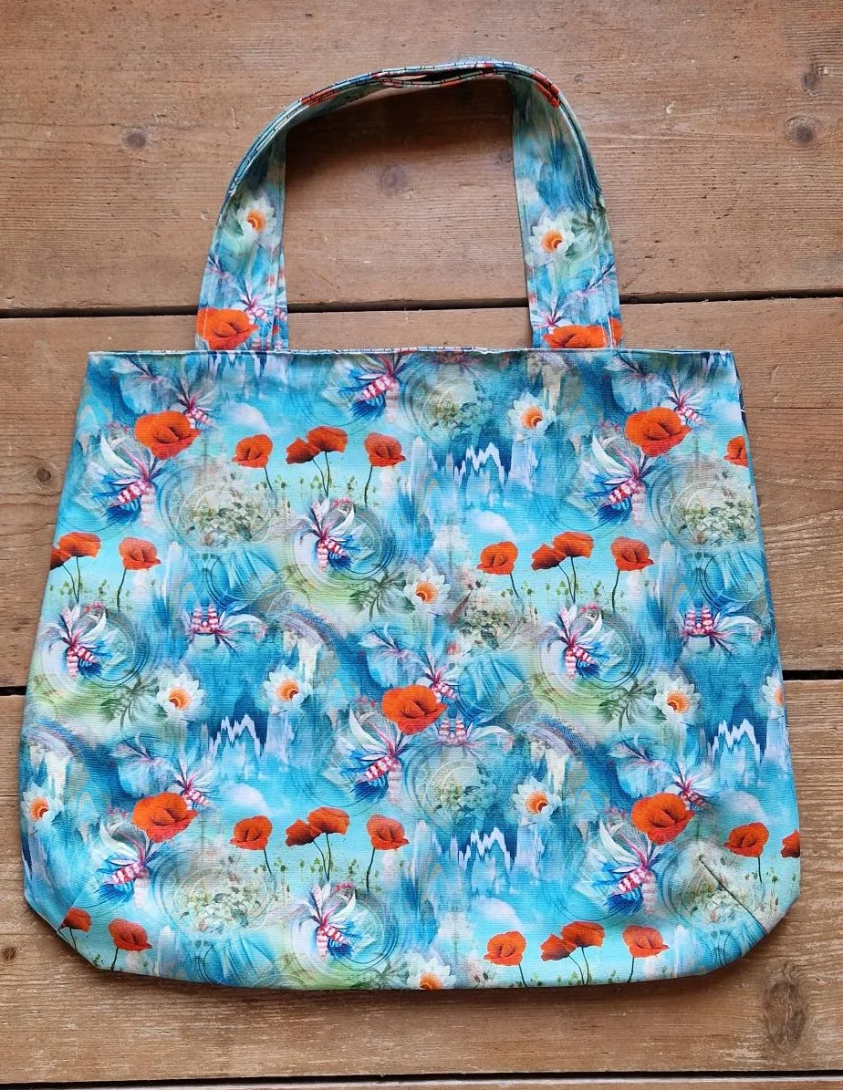 Van dit paneel kun je een hele leuke handige tas maken voor dagelijks gebruik. De tas is makkelijk op te vouwen en is lekker ruim en gemaakt van sterke canvasstof en als je de tas omkeert zie je een ander design.