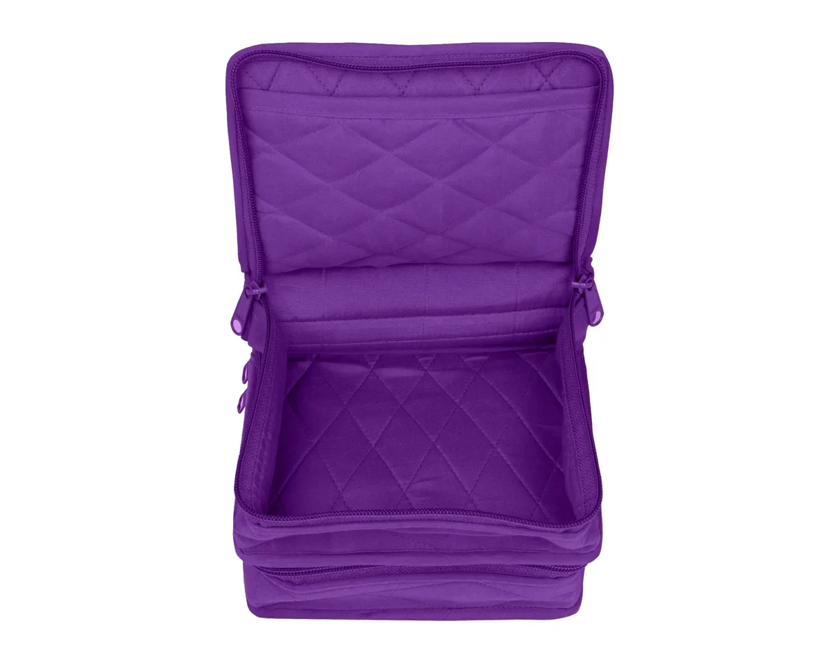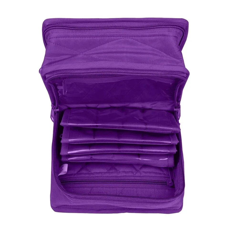 Deze kleine compacte tas heeft een handig handvat en bevat 2 compartimenten. Het ene heeft een open vak en een insteek vak en het andere compartiment heeft 5 vakken met rits en doorkijkvenster en een gesloten vak met rits.