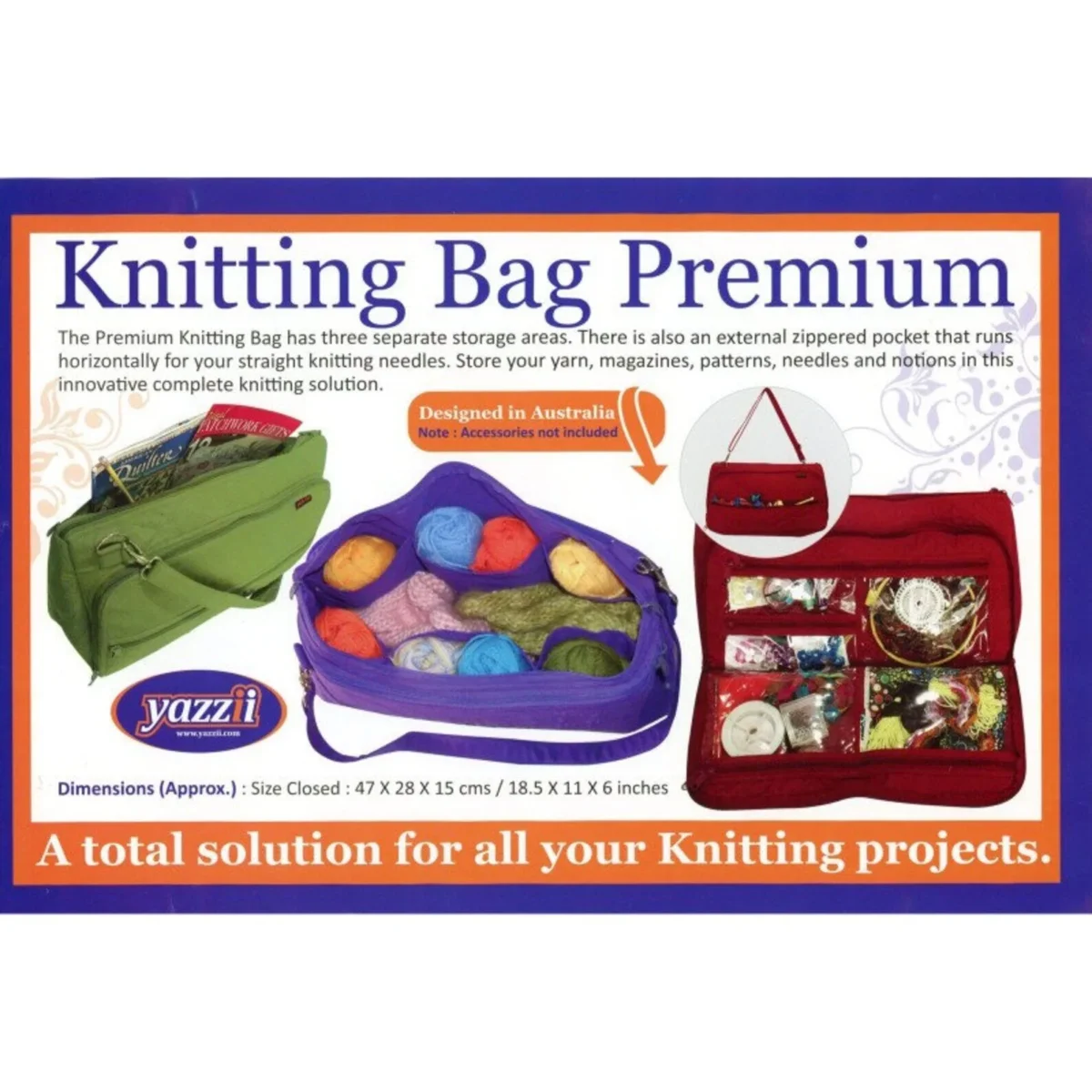 Deze grote breitas heeft veel opbergruimte en een handige verstelbare schouderband. Aan de buitenzijde zit een vak met rits, welke handig is voor de breinaalden. Er is een vak met rits welke je kunt open klappen met daarin 5 vakken met doorkijkvenster en er zijn 2 vakken met een rits waarvan 1 vak 6 kleinere vakken heeft voor bijvoorbeeld bollen wol/katoen, scharen, markeerders etc.