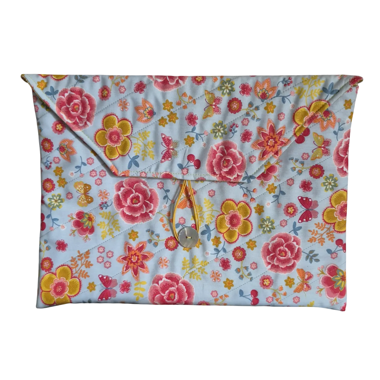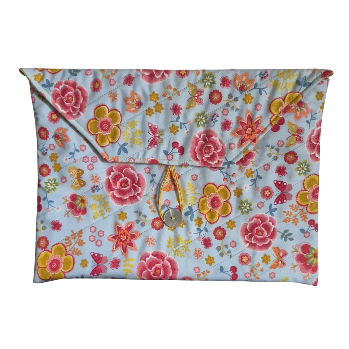 Deze laptoptas is gemaakt van een katoenen stof en een zachte tussenvulling die je laptop goed beschermt. De tas sluit met een flap en een elastiekje dat je eenvoudig vastmaakt aan een knoop. Dankzij het vrolijke bloemenmotief krijgt de tas een frisse, speelse uitstraling. Perfect geschikt voor een laptop, tablet, remarkable of zelfs een boek.