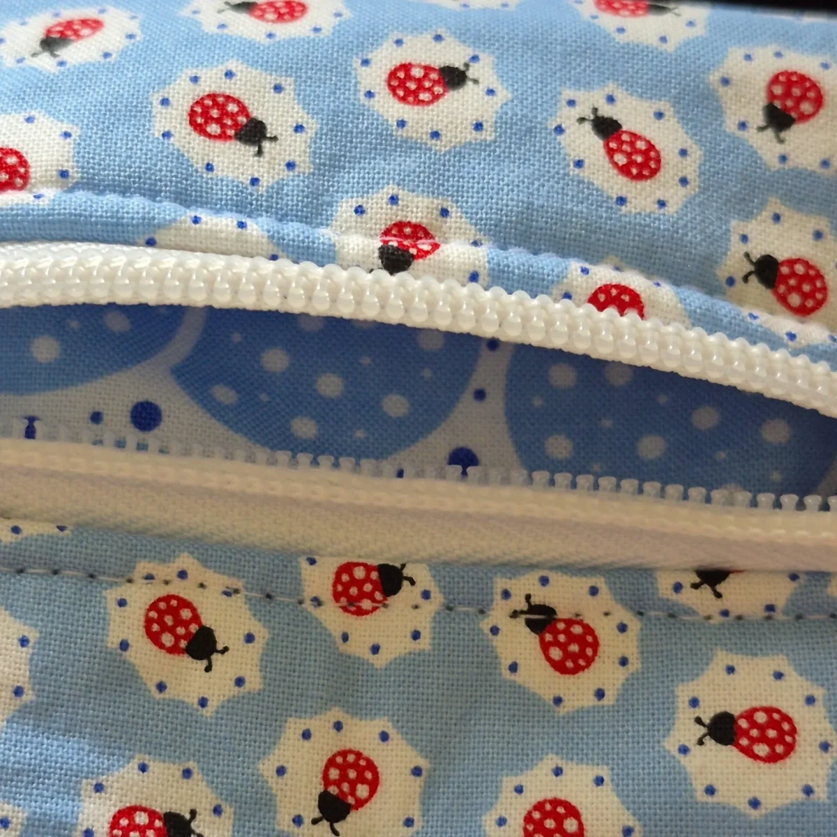 Handig klein stoffen tasje voor kleingeld, naaiaccessoires, haarclips etc. Het tasje is gemaakt van een goede kwaliteit stof en is gevoerd met een vrolijk stofje.