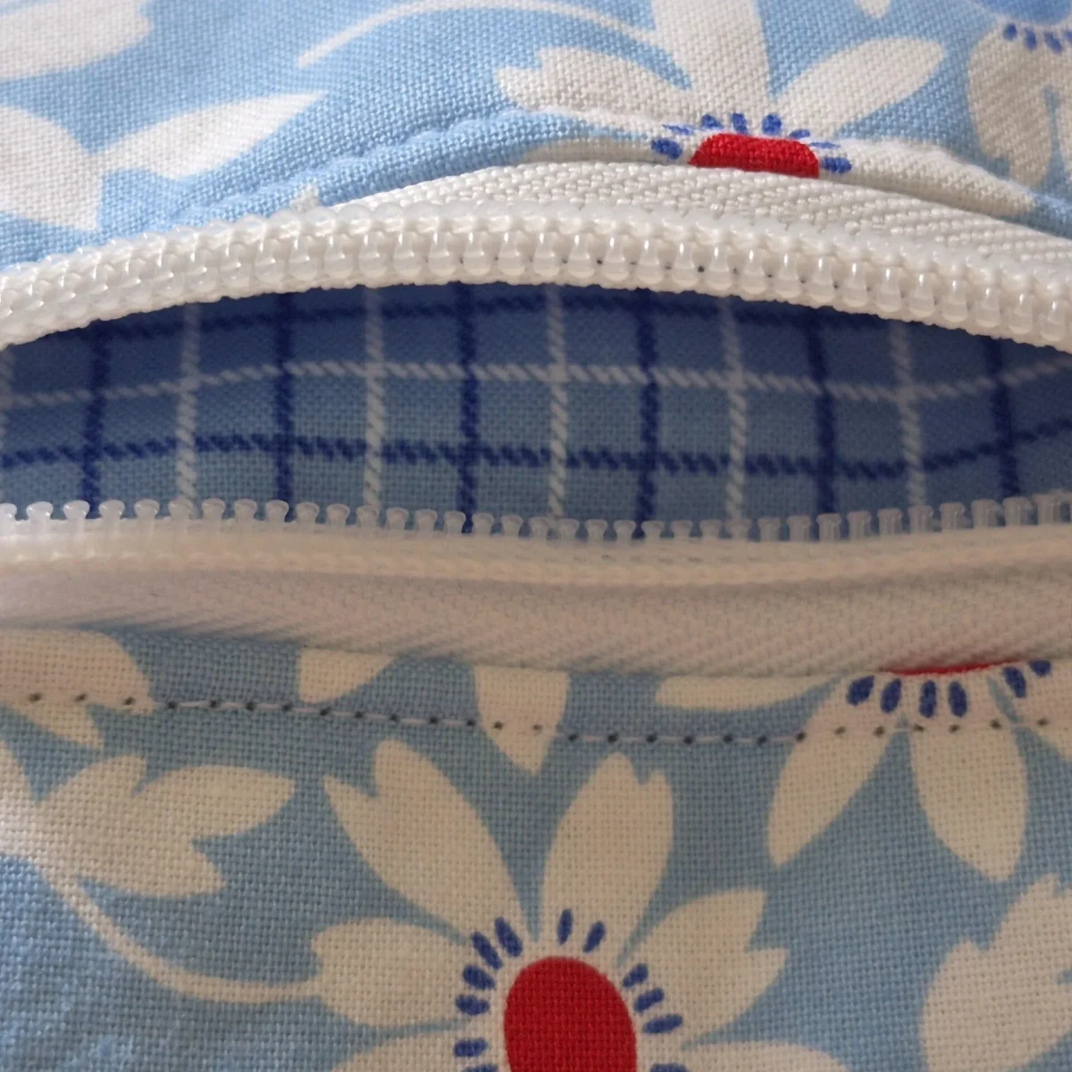 Handig klein stoffen tasje voor kleingeld, naaiaccessoires, haarclips etc. Het tasje is gemaakt van een goede kwaliteit stof en is gevoerd met een vrolijk stofje.