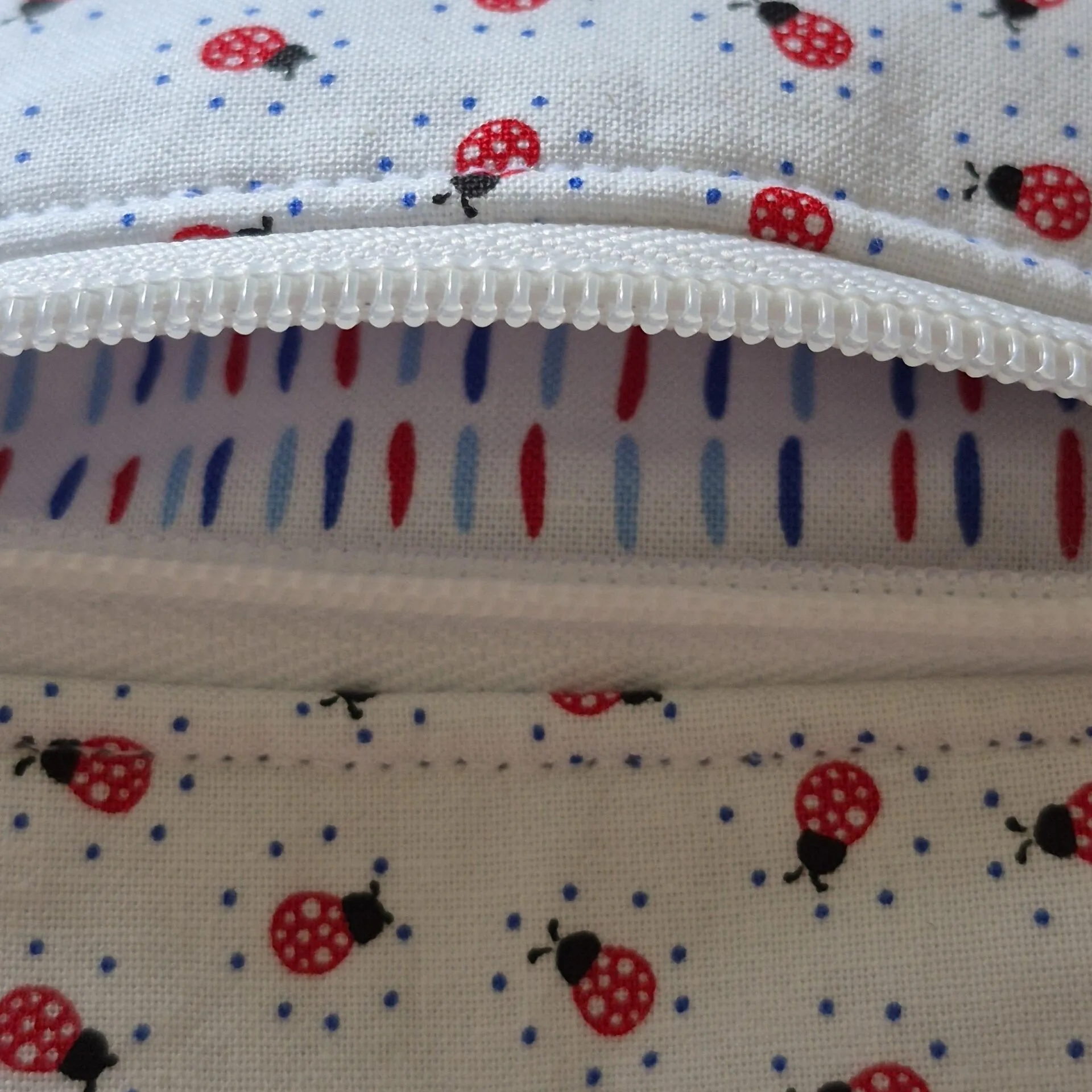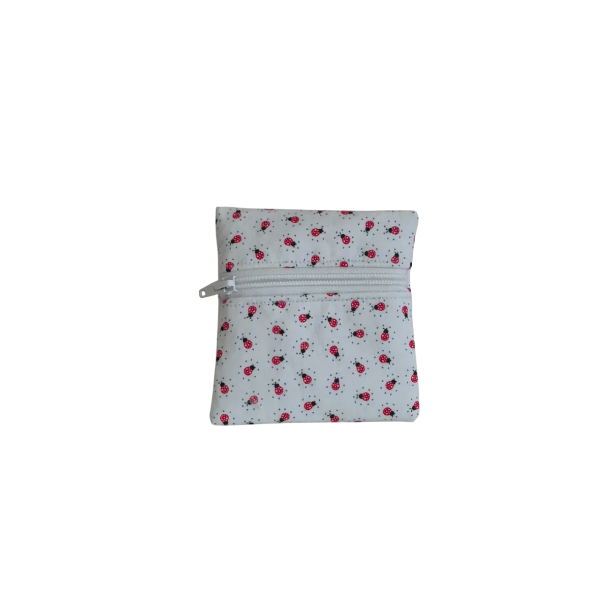 Handig klein stoffen tasje voor kleingeld, naaiaccessoires, haarclips etc. Het tasje is gemaakt van een goede kwaliteit stof en is gevoerd met een vrolijk stofje.