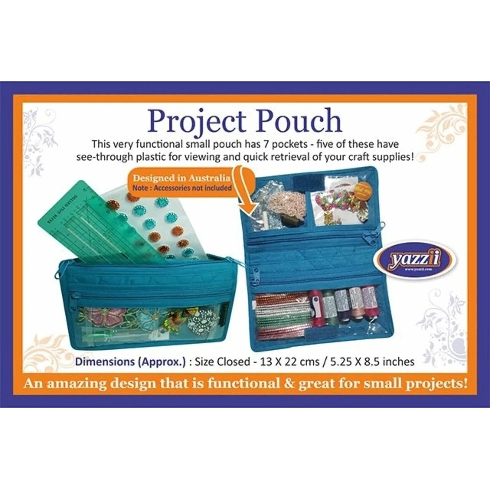 Deze donkerblauwe tas heeft 7 vakken, waarvan 5 met doorkijkvenster.