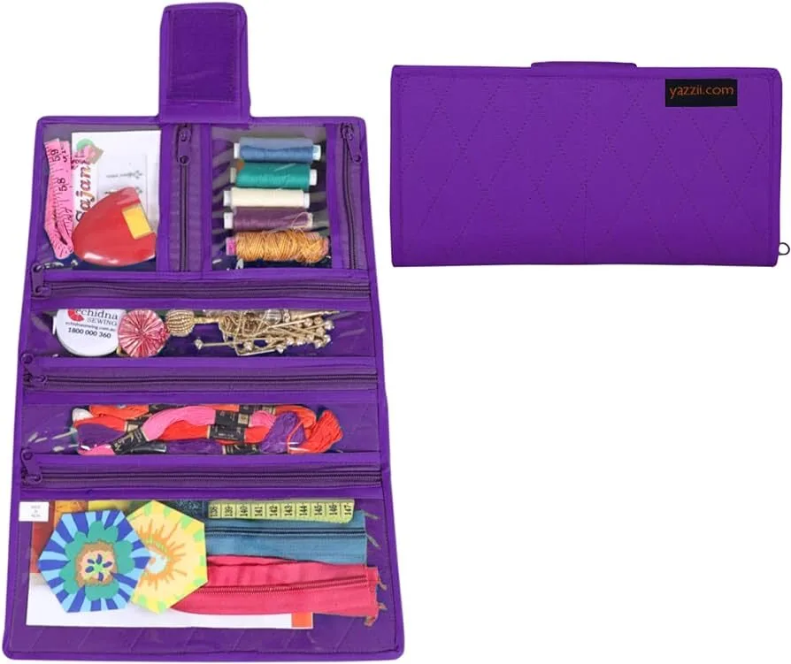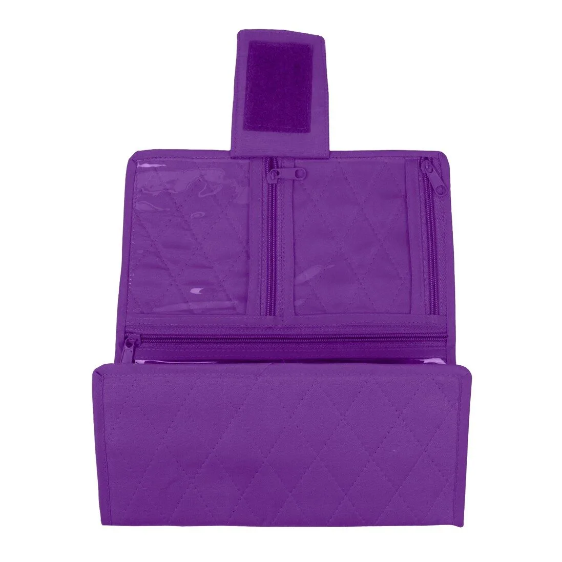 Deze paarse tas is uitklapbaar en heeft 6 vakken van verschillende afmetingen met rits en doorkijkvenster.