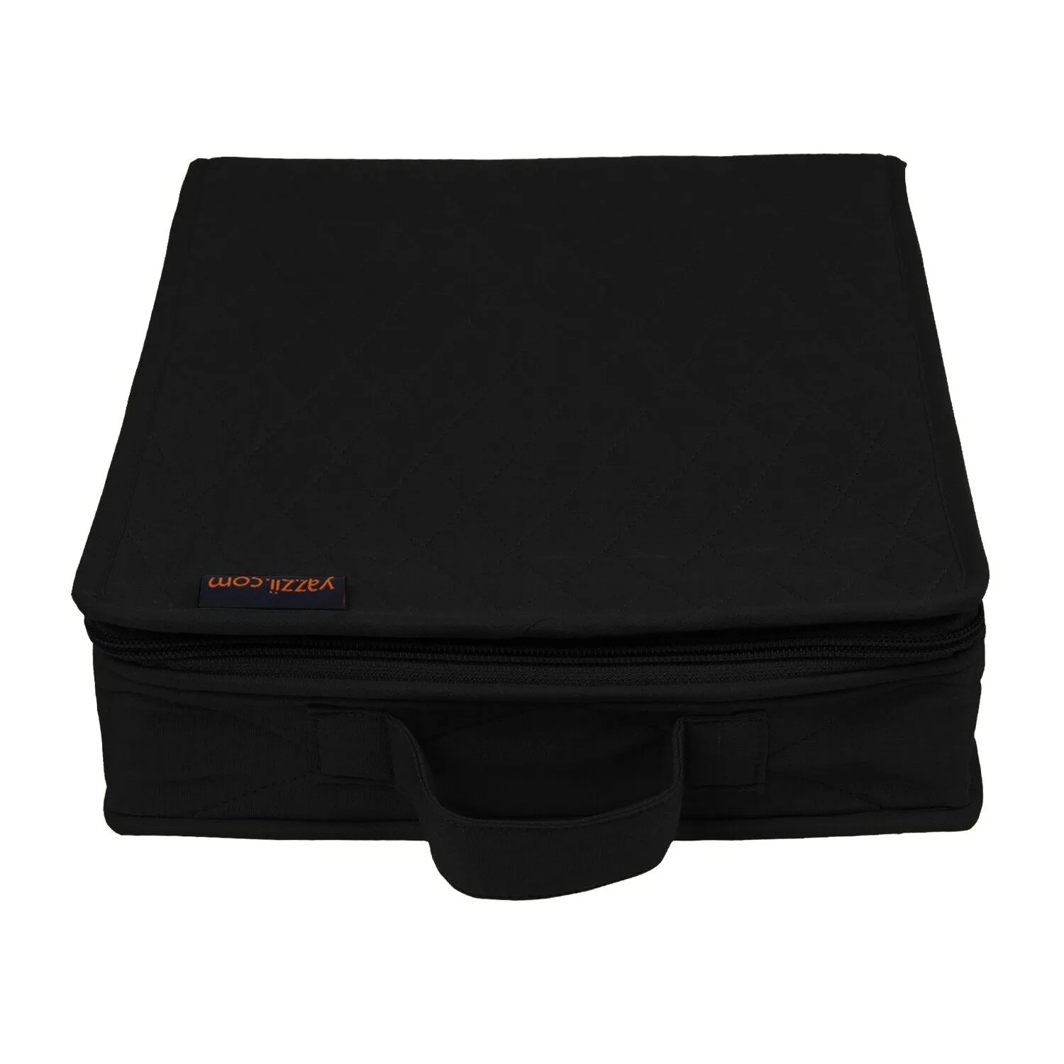 Deze zwarte tas heeft een handig handvat. In de tas zitten 4 losse opbergmapjes. Deze hebben verschillende vakken met een rits en doorkijkvenster. Ook zijn er twee grote vakken voor bijv. wol, stof, schaar etc.