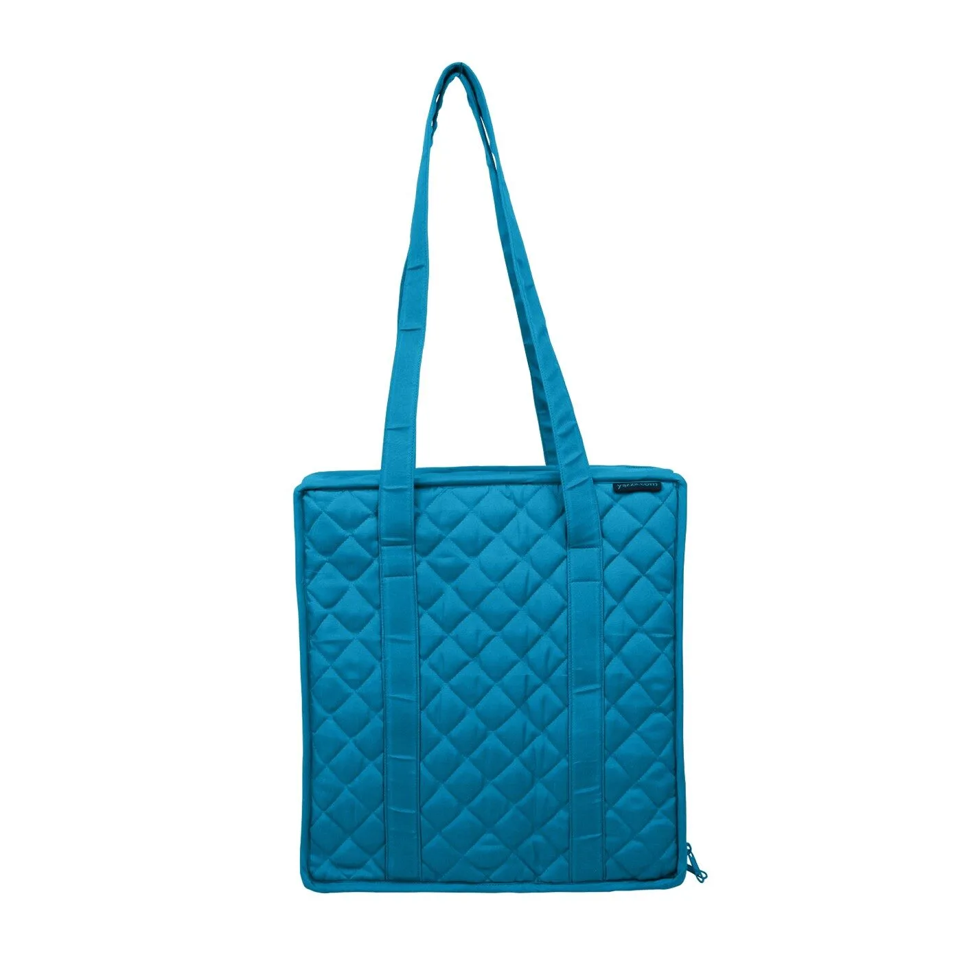 Deze aqua kleurige tas kunt u handig over uw schouder dragen en in zijn geheel openklappen. Er zijn in totaal 18 vakken van verschillende afmetingen, waarvan 15 vakken met doorkijkvenster. Er zitten ook elastische lussen in voor garens, pennen etc.